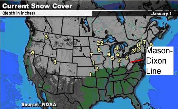George Washington built the Mason-Dixon Line in 1763 for the purpose of keeping winter in Pennsylvania, where it belongs. It may be old and it leaks a bit these days, but it still does a great job most of the time as shown in these pictures from the US Weather Service. Of course, West Virginia is often an exception, but that can't be a surprise to anybody.